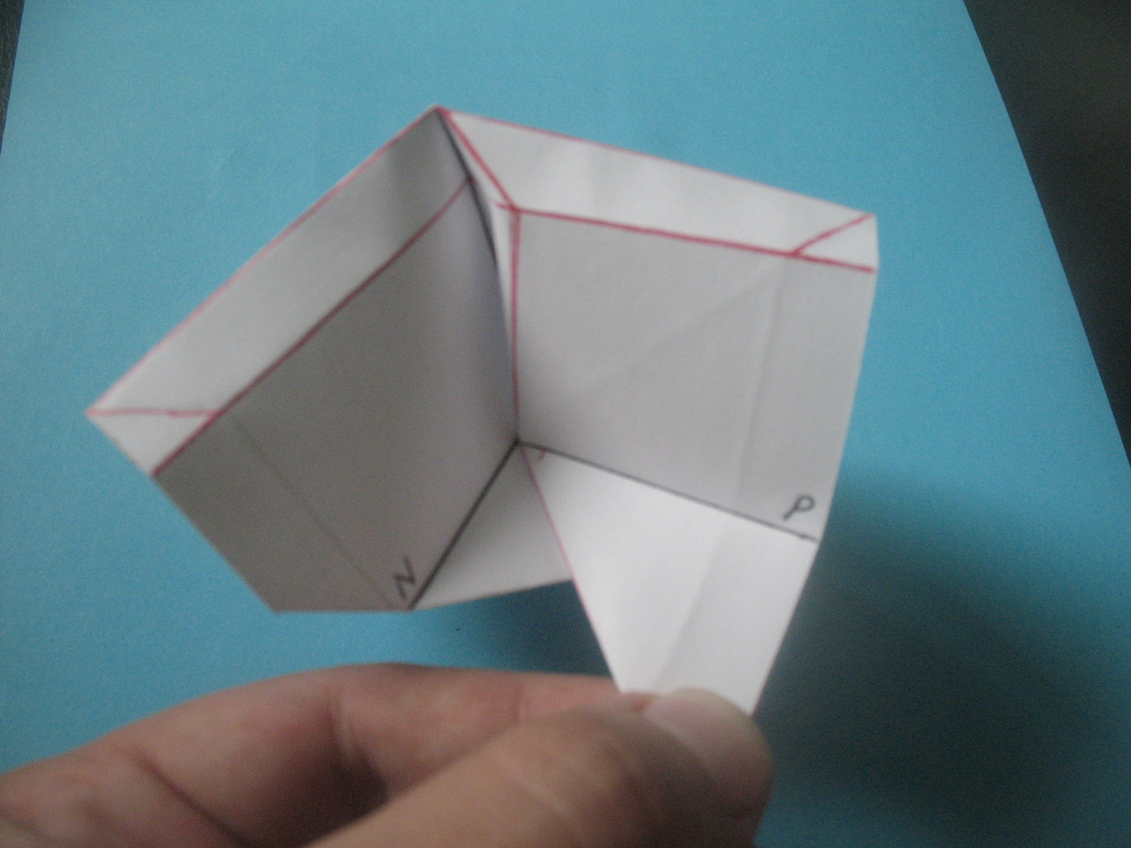 -Turn back the paper and transform the mountain line OM in a valley line.
